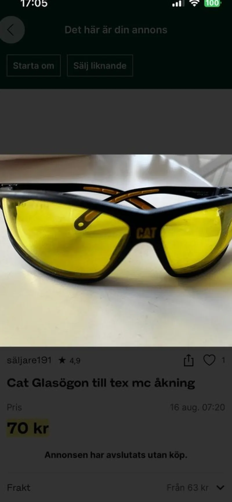 Tradera Övrig Sport & Fritid<Cat Glasögon till tex mc åkning