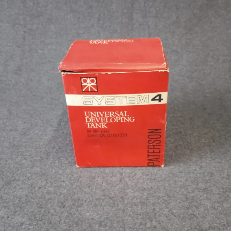 PATERSON Universal Develeloping Tank SYSTEM 4, vintage utrustning för framkallning av film 35mm. 126,127,120,220. Broschyrer mm ligger i kartongen.