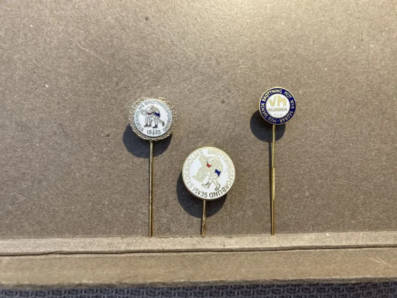 Tradera Pins & Nålar<Tre nålmärken Stockholms Brottningsförbund + VM-Klubben