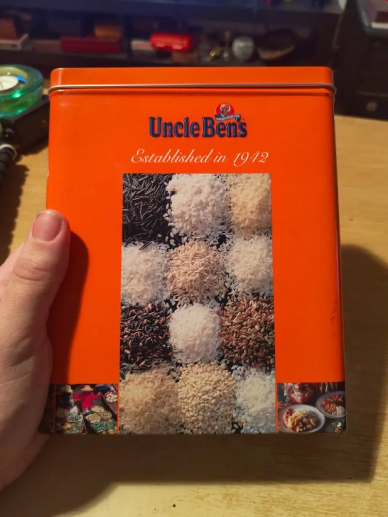 Tradera Plåtemballage<Uncle Bens – Plåtburk