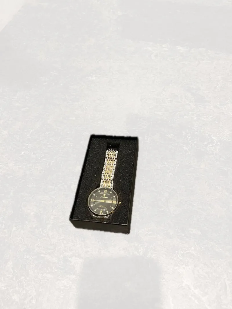 Säljer ett Posdagar herrarmbandsur i stål med svart urtavla och romerska siffror. Urverket är ett kvartsverk. Klockan är i gott skick och har aldrig använts. Den levereras i originalbox.