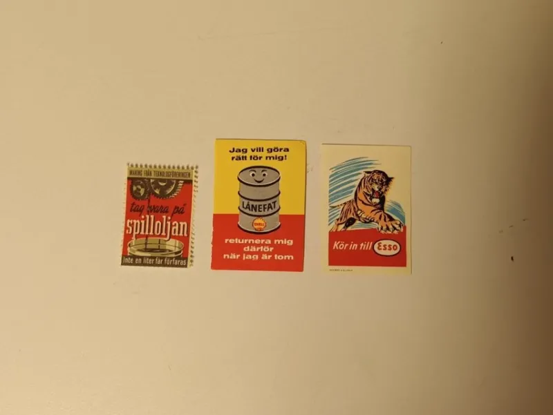 Tradera Reklametiketter Esso och Shell^ Bensinia