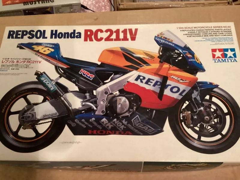 Tamiya 14092 Plastbyggsats i skala 1/12. Påbörjat objekt. Ram, motor och bakhjul monterad. Kåpa, tank och säte lackerade vilket är snyggt gjort plus några delar till. Jag har försökt läsa mig till övrig status och för mig ter det sig att allt är där.