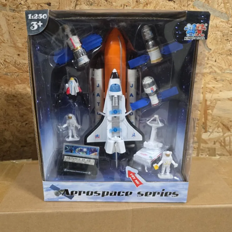 Ny, oöppnad rymdskeppsleksak från Aerospace Series. Satsen innehåller en rymdfärja, satelliter, astronauter och tillbehör. Die-cast metall. Perfekt present till den rymdintresserade!