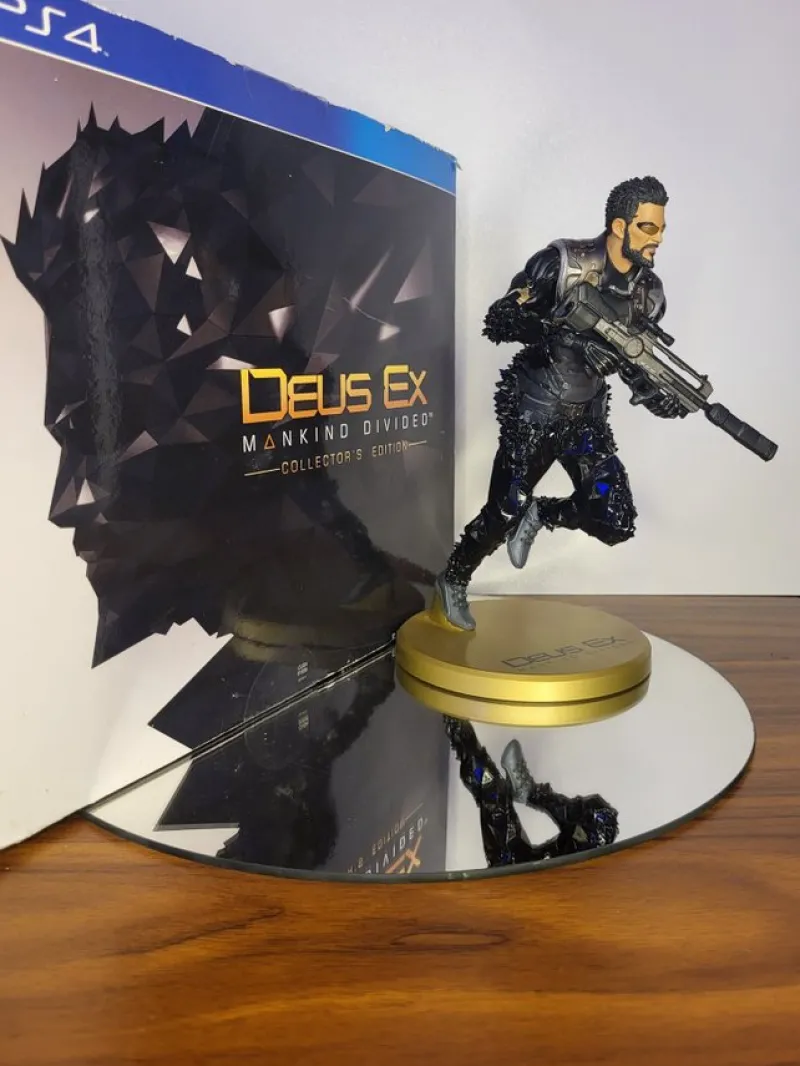 Deus Ex: Mankind Divided – Collector's Edition Statue, Steelbook & Artbook. Statyn är ca 22cm hög och hela collectors edition är ett toppen föremål för alla samlare. Passa på att ta hem en riktigt snygg Deus Ex samlarfigur, steelbook, artbook och samlarlåda.