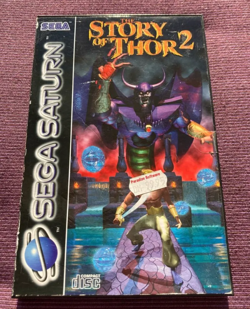 Story of Thor 2 till Sega Saturn, komplett och i PAL. Mycket fint skick, testat och fungerar perfekt! Notera prislapp på framsidan, den har jag inte vågat försöka ta bort.