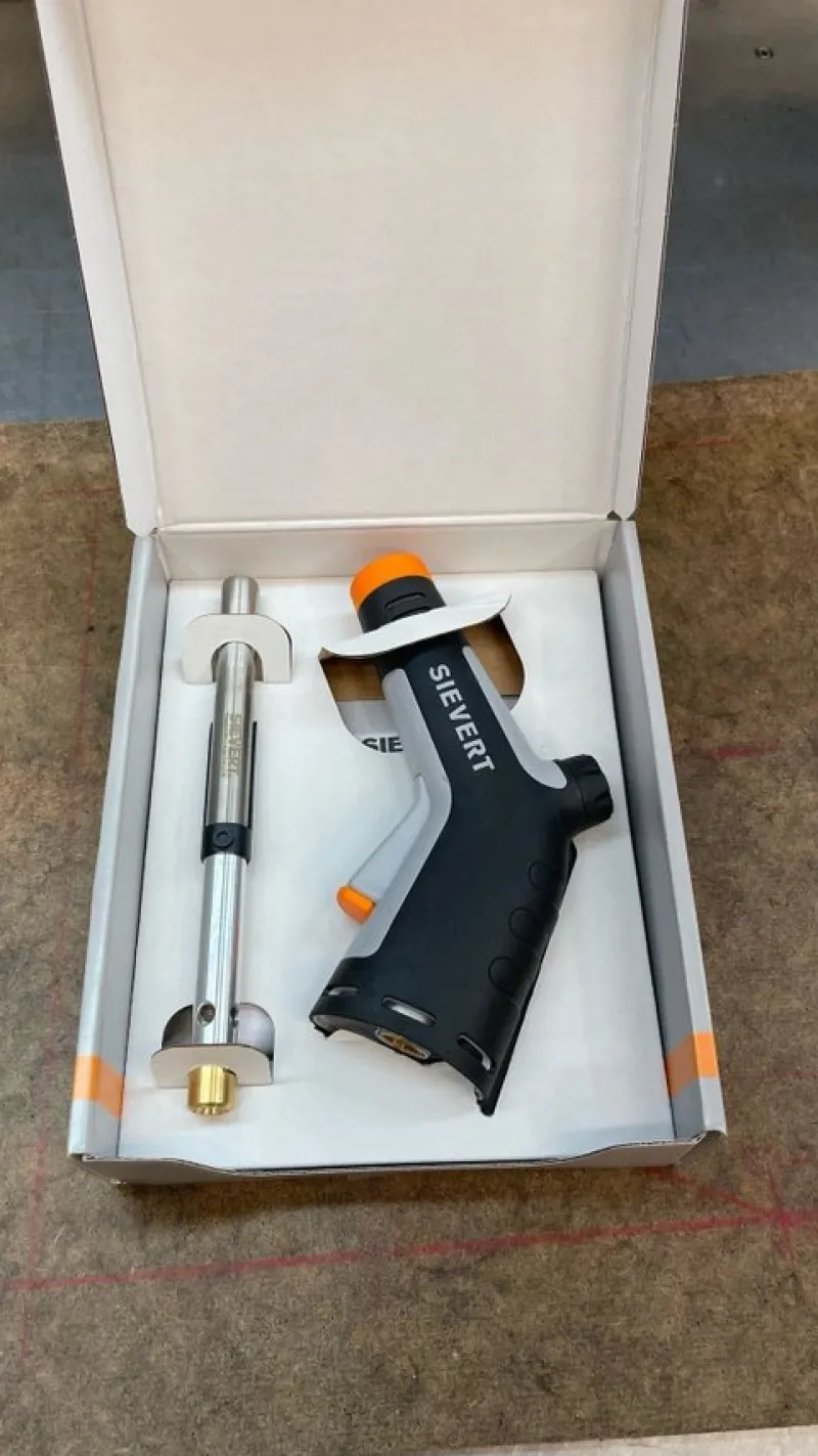 Sievert Powerjet 2535 är en Powerjet med handtag i dubbelsprutad komposit för komfort och säkerhet. Blåsbrännaren har en automatisk tändning – lågan tänds och släcks med tryckknappen. Sievert Powerjet 2535 är det mest kraftfulla och effektiva brännarsystemet på marknaden. Med sin moderna förbränningsteknik i kombination med en unik gasmix ger den en lågtemperatur på hela 2400°C.