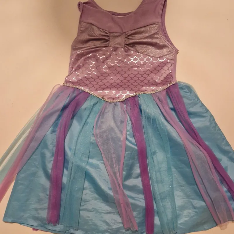 I fint använt skick. Såg nån liten reva på kjolen. Se bilder. Inte sett några andra fläckar eller hål. Storlek 122/128 men upplevde den något liten i storleken mer som 116-122.