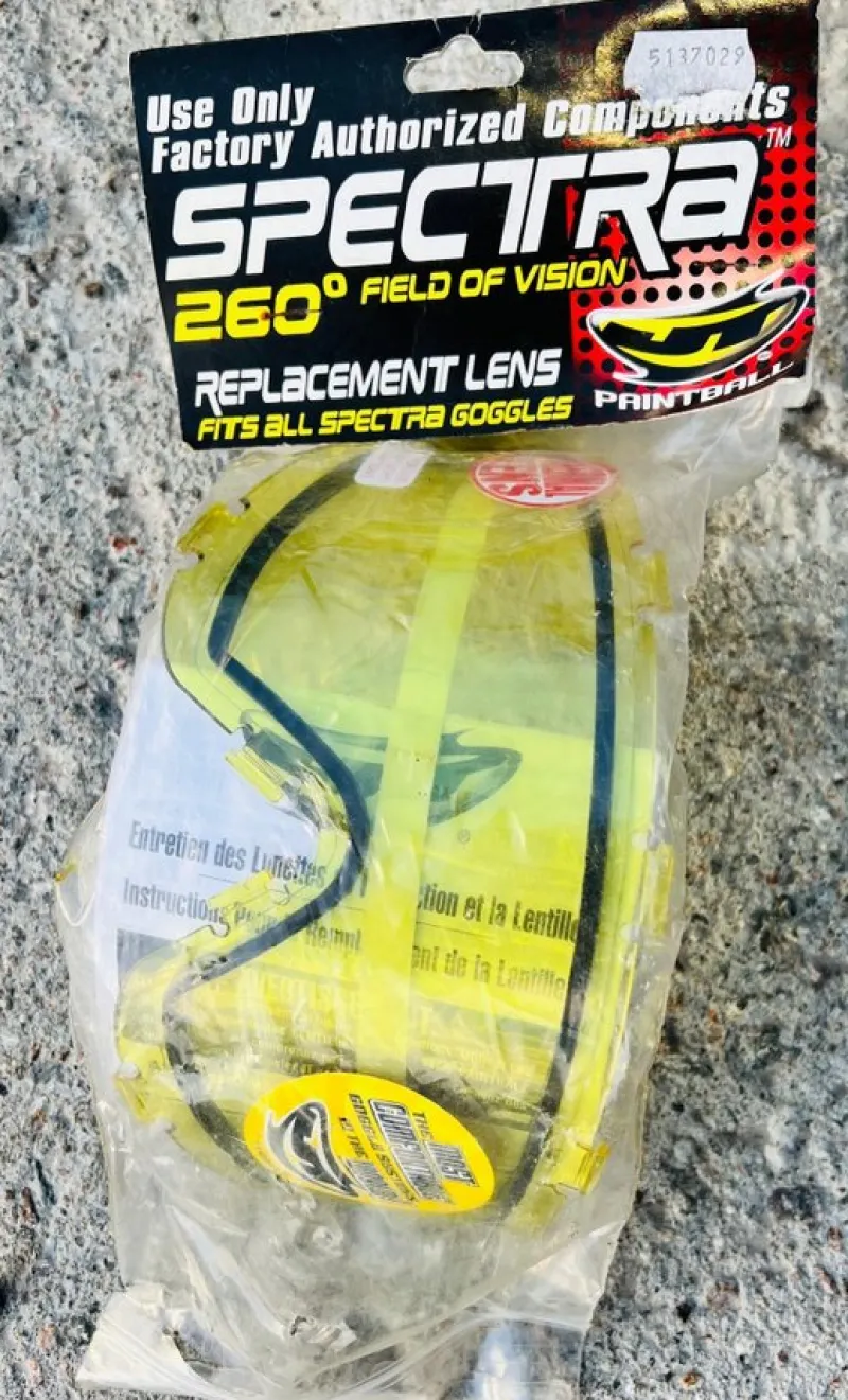 JT Spectra 260° gul ersättningslins för paintballglasögon. Passar alla Spectra-glasögon, dubbelglas och fria från imma! Artikelnummer: 8406-00. Ny och oanvänd i originalförpackning.