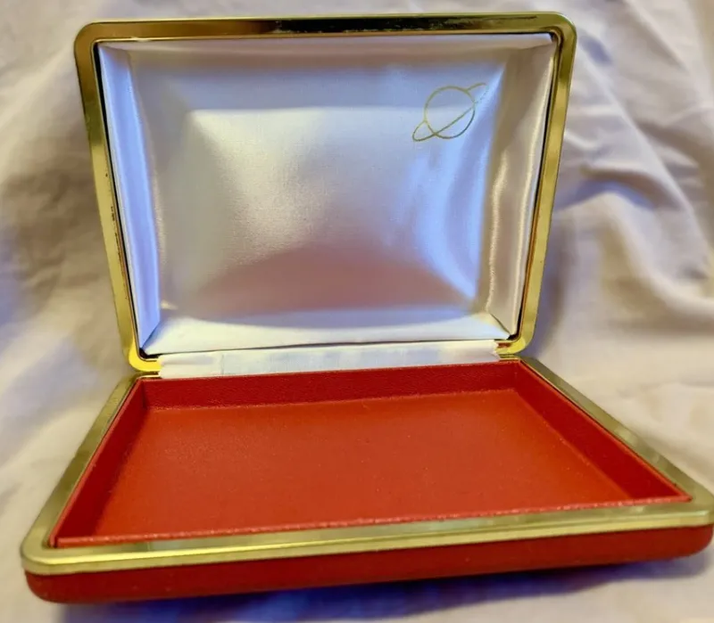 Tradera Smyckeskrin & -förvaring<Vacker äldre smyckeask med logo av planet i toppskick ursprung okänt