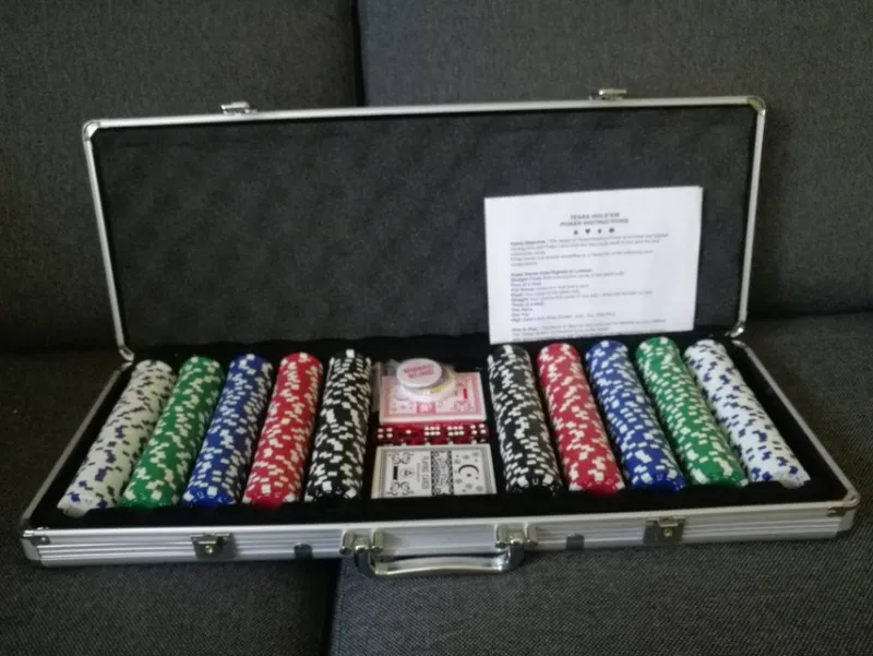 Säljer ett stort pokerset med tillbehör. Kofferten innehåller pokermarker i olika färger, två kortlekar och tärningar. Perfekt för pokerkvällar med vänner!