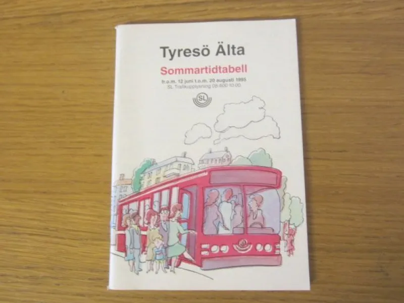 Sommartidtabell för Tyresö och Älta från SL, giltig från 12 juni t.o.m. 20 augusti 1985. Innehåller linjenummer, sträckningar, samlingstabell och kartor.