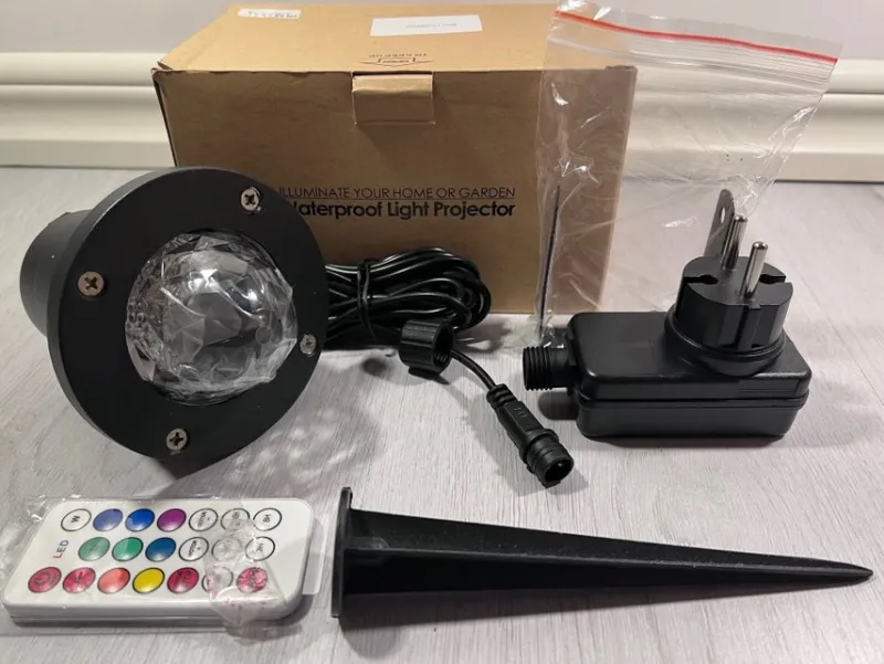 Vattentät ljusprojektor med fjärrkontoroll. Denna ljusprojektor lyser väldigt starkt och klart, perfekt för att lysa upp trädgården, eller varför inte till att göra hemmafesterna lite extra roliga? Lyser i färgerna: