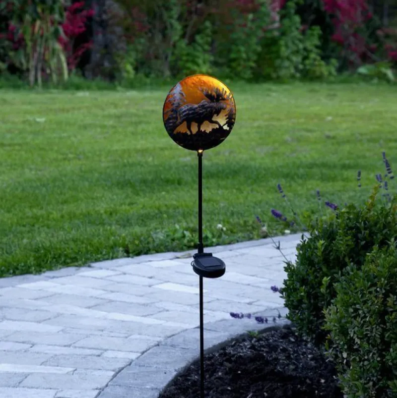 Solcellspinnen Moosy är en trädgårdsdekoration i form av en rund platta med en siluett av en Älg. Den utskurna metallen blir en vacker dekoration och är lättplacerad i en plantering i trädgården eller på en balkong eller terrass. Den lyser upp med ett varmvitt sken under natten. Placera solcellsdekorationen där solen kan nå panelen under dagen för att få ultimat laddning till det medföljande batteriet.