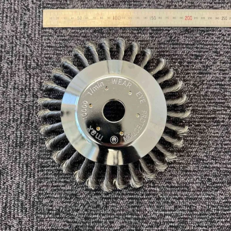Stålborsten har tvinnade trådar som effektivt avlägsnar ogräs och mossa från fogar och mellan stenplattor. Borsten har en diameter på 200 mm och är kompatibel med de flesta röjsågar, vilket gör den idealisk för trädgårdsarbete och underhåll av stenbelagda ytor.