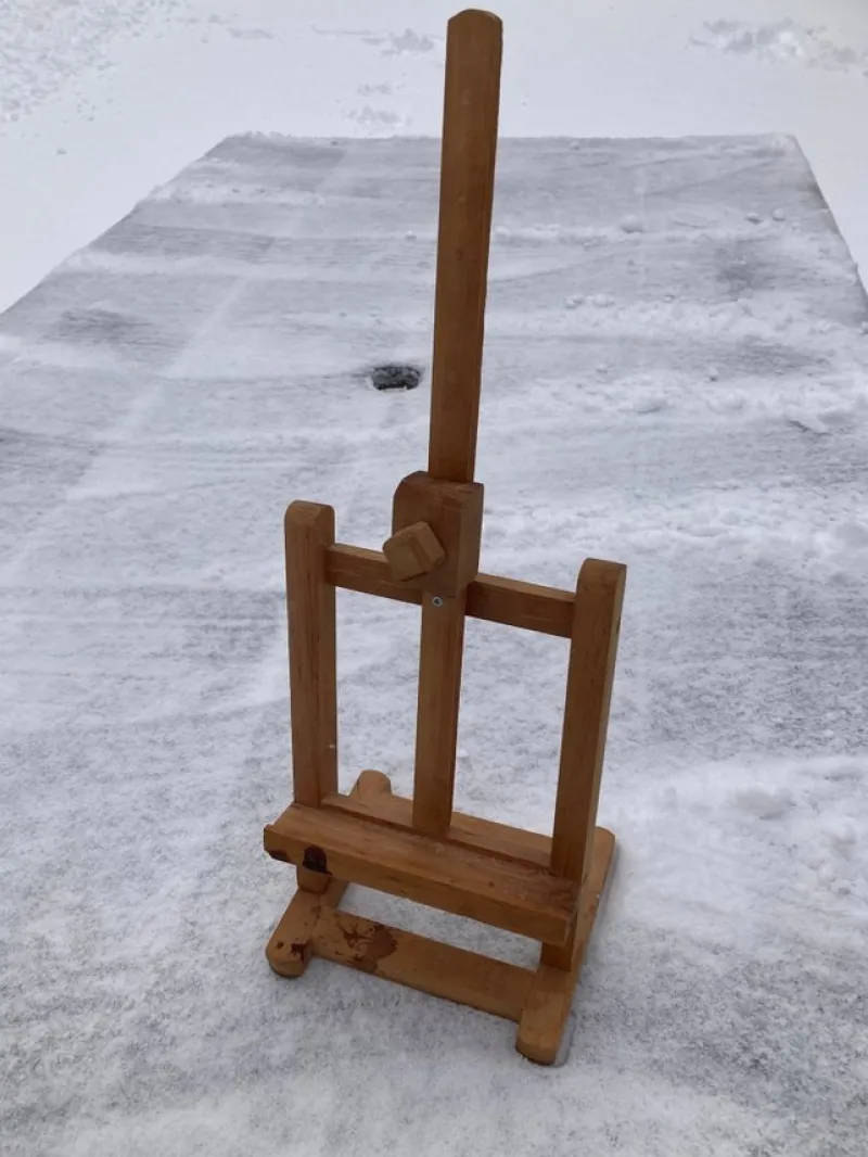 Litet och smidigt trästaffli, perfekt för mindre målningar eller skisser. Stabilt och enkelt att använda.