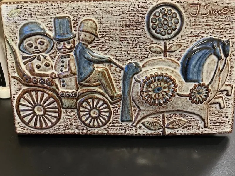 Väggrelief . Bröllop i keramik av Josef Simon. Etikettmärkt och signerad.