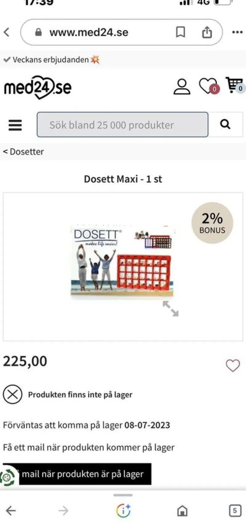 Veckodosett för 4 tillfällen / dag