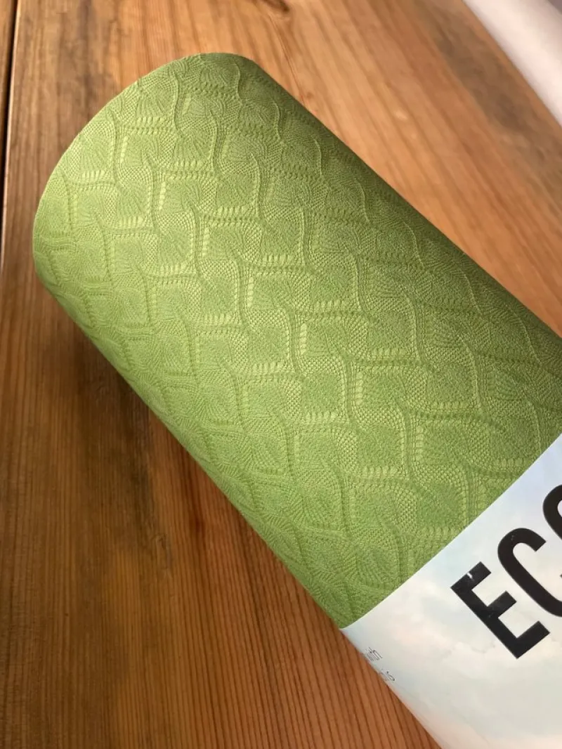 Mattan är miljövänlig och slitstark, tillverkad av materialet TPE som är 100% biologiskt nedbrytbart och återvinningsbart. Den har mycket bra grepp (anti-slip) och passar för den aktiva yogautövaren. Halkskyddet hjälper dig att hålla hållningen även i avancerade positioner och när mattan blir våt av svett.