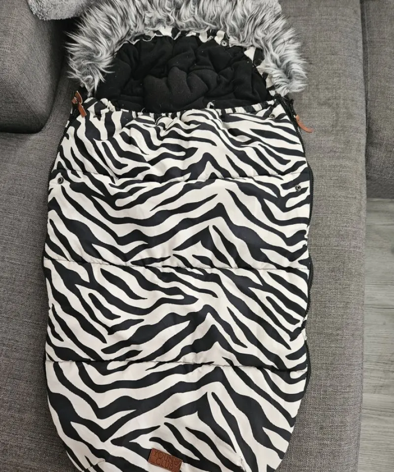 En zebramönstrad fodrad åkpåse från "YOUNG CLUB".