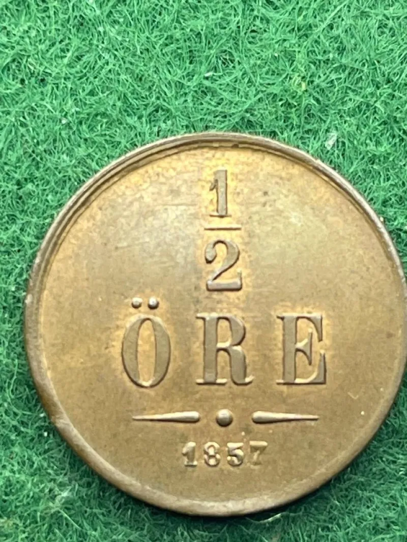 Oscar I 1/2 Öre 1857 Liten men naggande god Se Tonkin. ( 0169 )