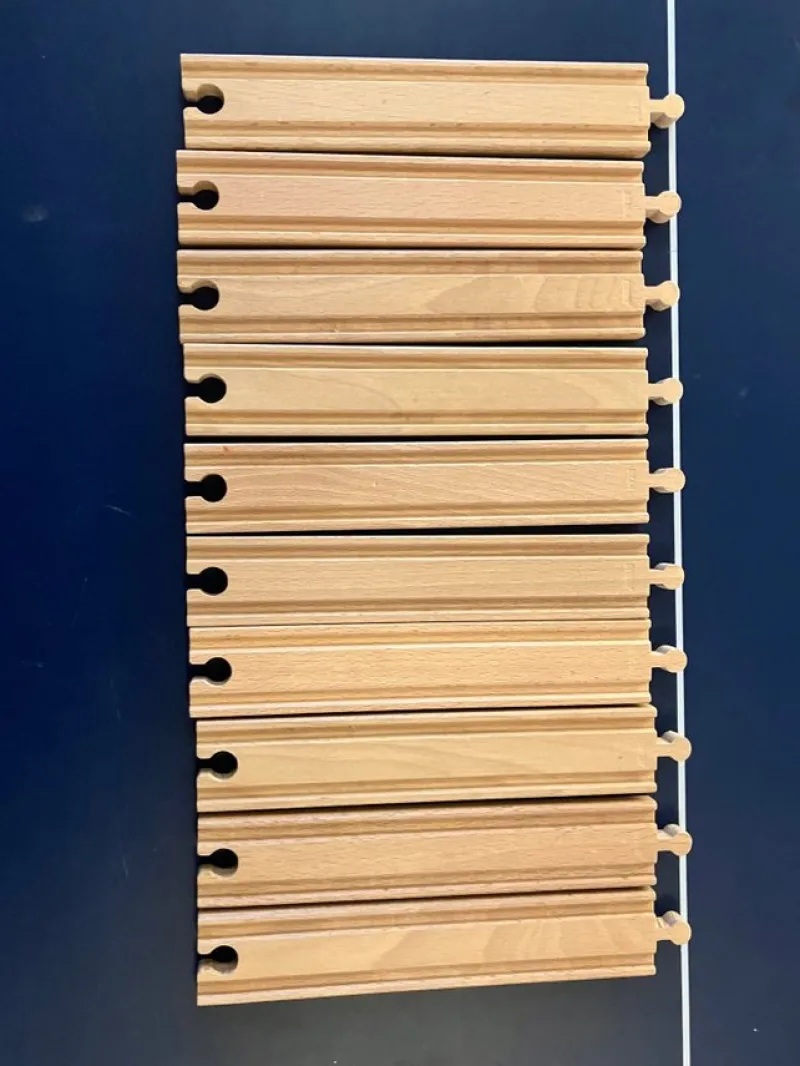Säljer 10 stycken träspår till tågbanan. Perfekta för att utöka din befintliga bana och skapa nya spännande äventyr för dina tåg.