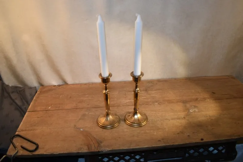 2 st fina ljusstakar i mässing från Scandia , 18,5 cm höga i fint skick behövs dock putsas