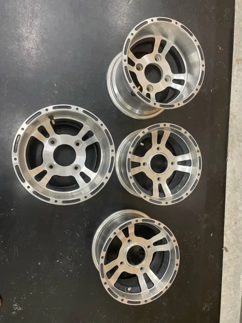 Säljer 4 st aluminiumfälgar. Två stycken är 10×5.5 och två stycken är 10×8. Centrumhål 70mm ,delning