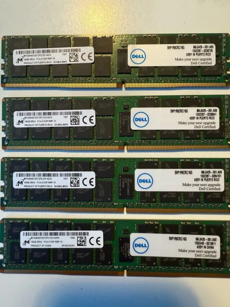 Sälj fyra stycken Dell-certifierade RAM-minnen. Varje minne är på 16GB, DDR4 2133