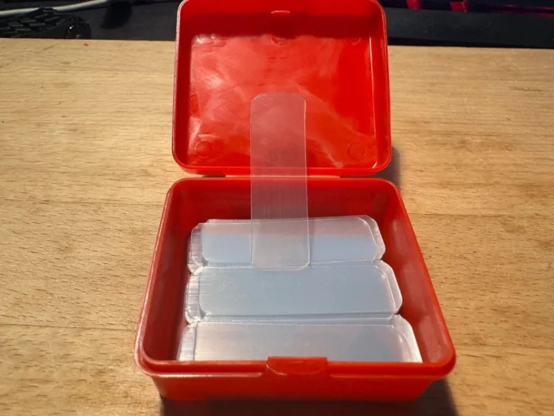 Smidig dubbelhäftande tejp i portionsbitar, riktigt bra vidhäftningsförmåga, en remsa höll upp en oöppnad colaburk utan problem.