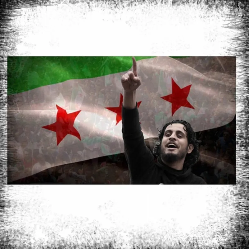 Tradera Abdul Baset Al-Sarout with Fria Syrien Grön Flagga affischlim 17.5 x 9.5cm^ Flaggor