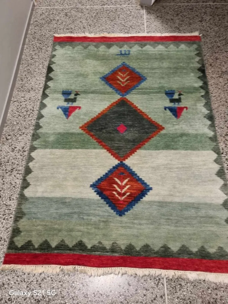 Tradera Äkta Gabbeh Handknuten matta med geometriskt mönster> Mattor