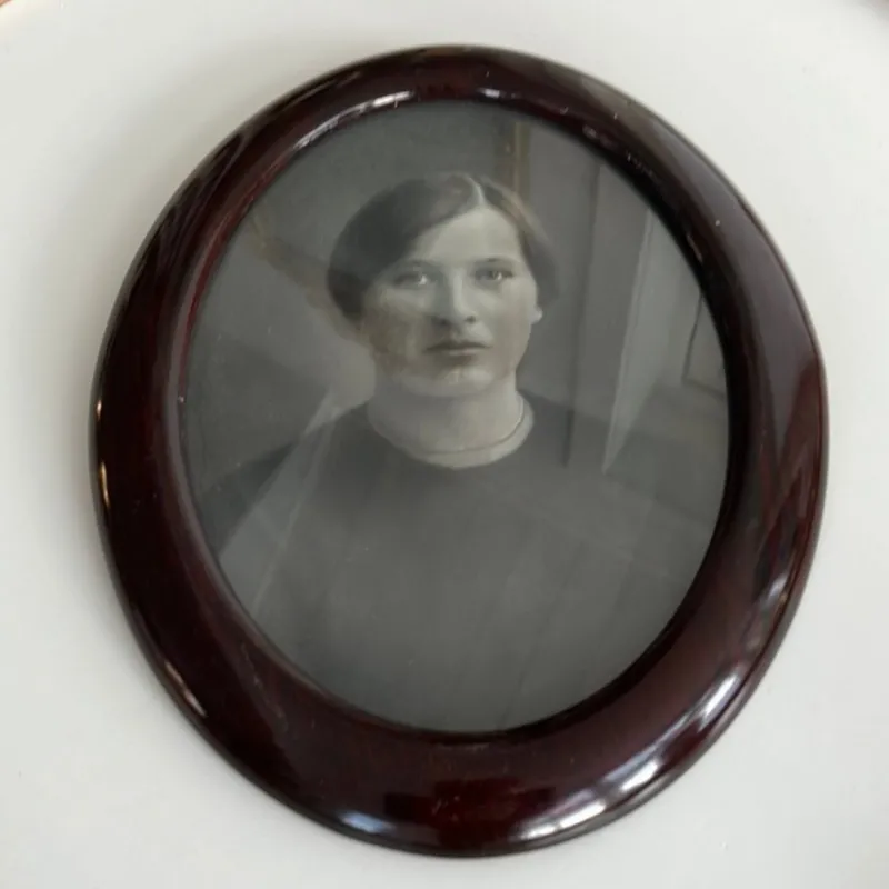 Tradera Äldre mörkbrun oval ram med porträtt^ Ramar