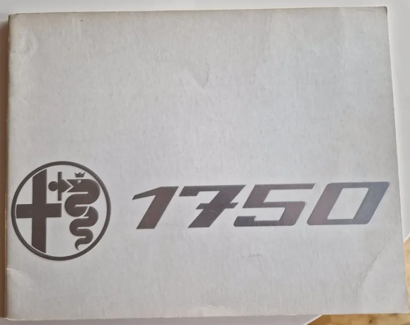 Original Alfa Romeo 1750 broschyr i bra skick. Visar detaljerad information om bilens specifikationer, funktioner och design. Bilderna visar bilens interiör och exteriör, samt tekniska detaljer.