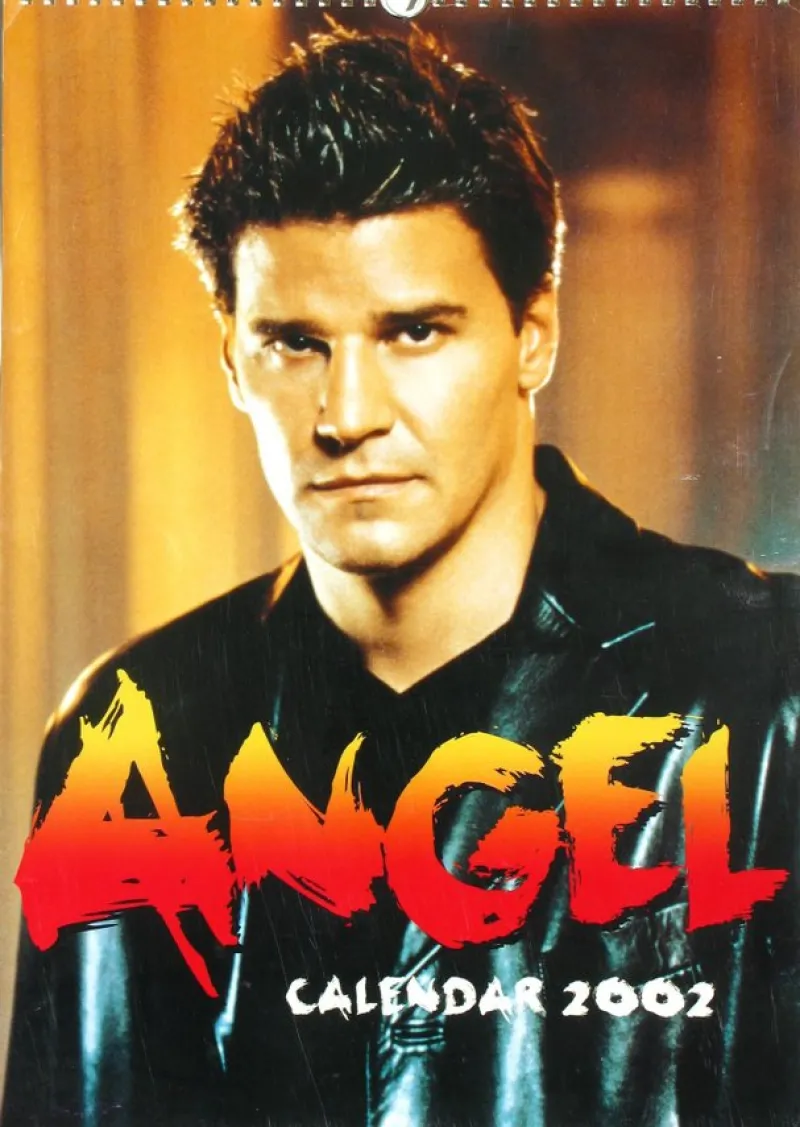 Kalender med Angel från tv-serien Angel. Bilderna är i färg.