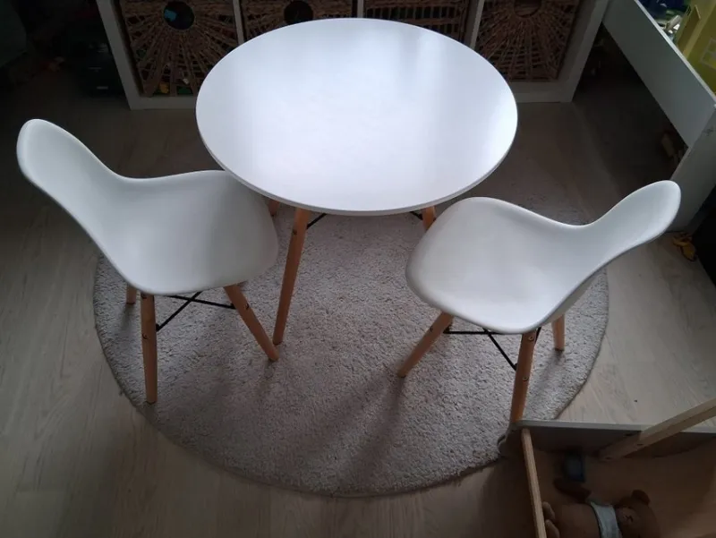 2 at barnstolar (OBS ej bordet). Använda men fortfarande fina. Repiga och något märke enligt bild, men inget ritat på eller färgspill eller så.
