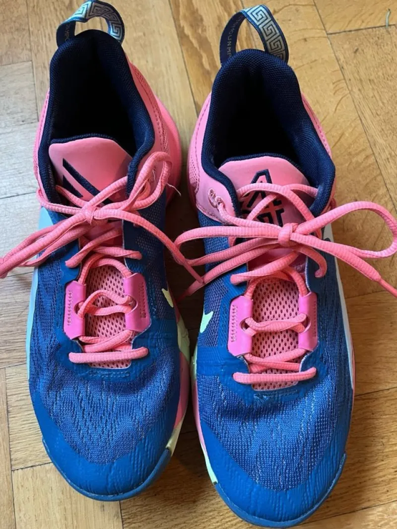 Basketbollskor i rosa, gul och blå. Mycket fint begagnat skick. Namnade (se bild 2)