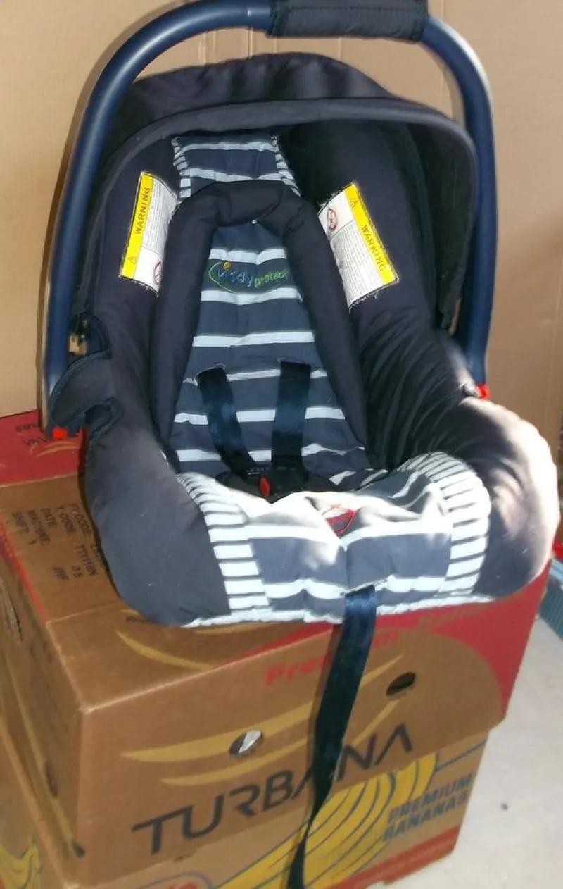 Beskrivning hur man fäster bilstolen i bilen, finns på sidan av bilbarnstolen.