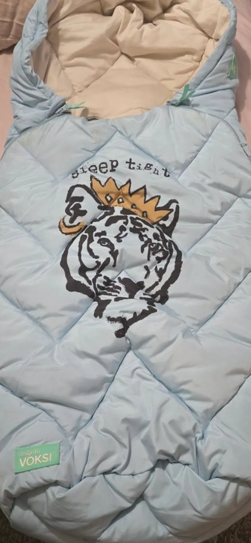 Här kommer en blå Voksi åkpåse i fint skick. Obs se fläck bild 2. Djur- och rökfritt hem. Jag ansvarar inte för Postnords slarv om varan skulle komma bort. Jag erbjuder samfrakt vid köp av fler varor.