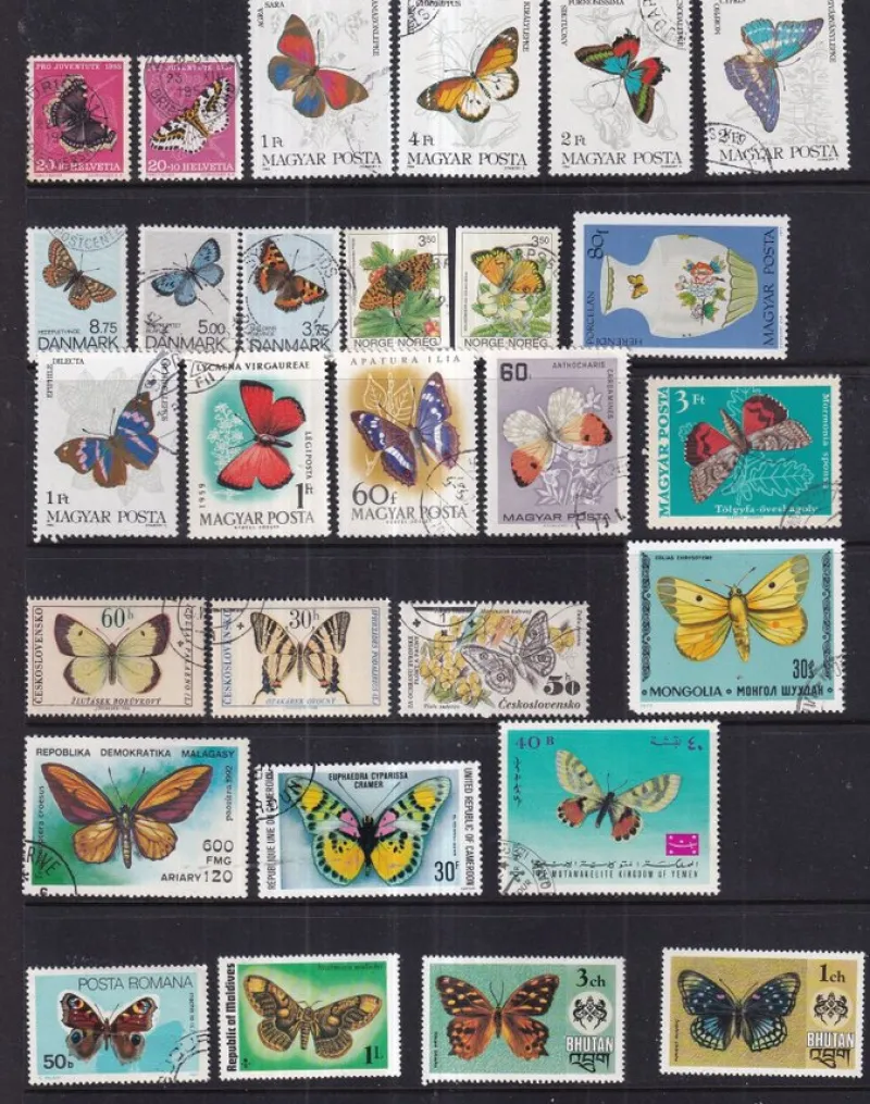 Tradera blad med motivmärken fjärilar^ Flera Länder