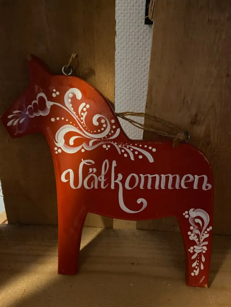 Tradera Dalahäst välkommen skylt höjd 20 cm^ Dalahästar