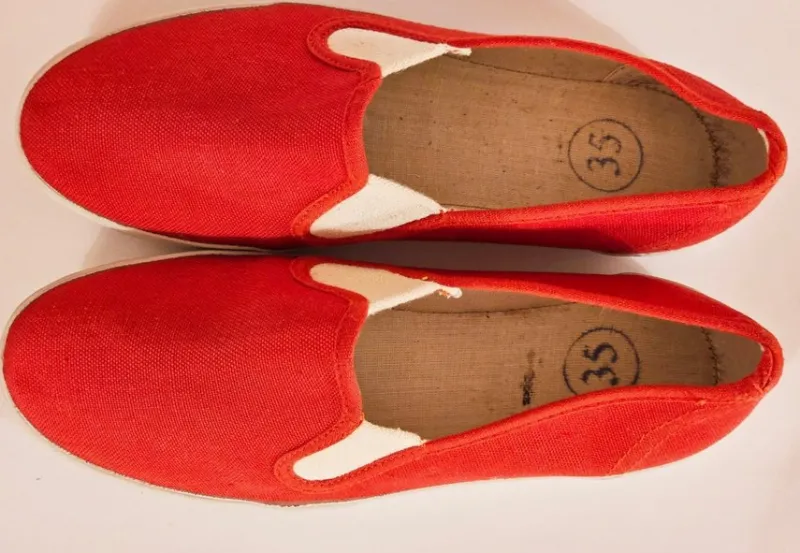 Helt Nya Oanvända Röda canvas skor med vit sula i storlek 35. Skorna är i gott skick.