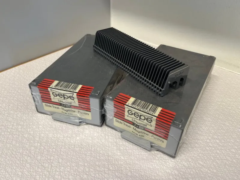 2 st Gepe Universal diagmagasin inplastade oöppnade original 2×40. Dessutom ett extra löst magasin (Rollei) för 36 bilder.
