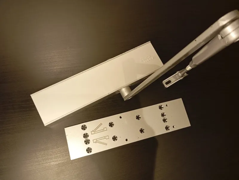 Dorma TS68s dörrstängare. Inkluderar arm, montageplåtar och skruv.