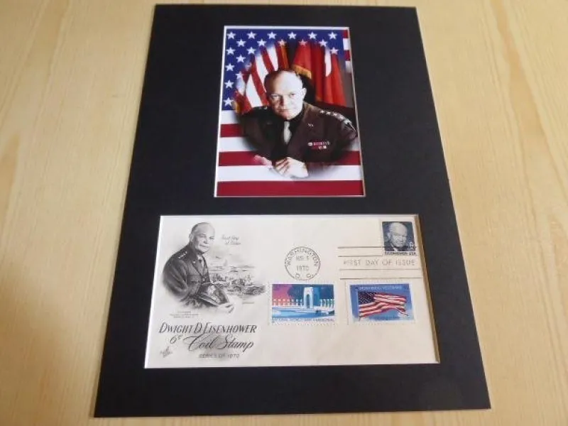 Eisenhower, fotografi är nytryckt & original USA FDC. Passepartout storlek: A4.