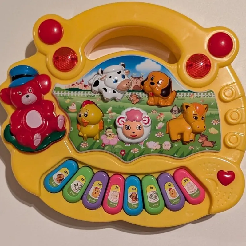 Detta flerfärgade attraktiva tecknade musikaliskt piano har musik och ljusfunktion. Den spelar också upp djurljudet när barnet trycker på en viss djurformsknapp.