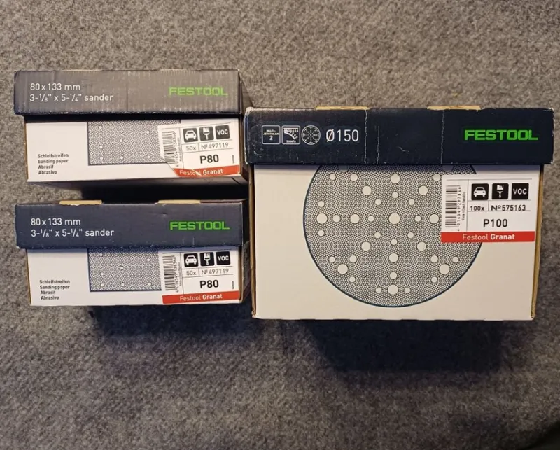 2 st lådor med Festool slippapper Granat P80 80×133mm