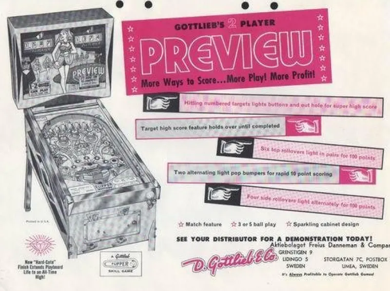 Tradera Flyer flipperspel Gottlieb Preview^ Spelautomater