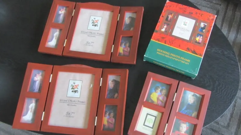 3 fotoramar, samlingsramar, 1 st för 4 foto , 6X7,5cm. 2 stycken för ett foto 17X12cm och fyra foto 7,5X4cm vardera.