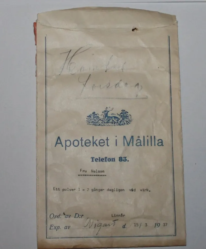 Tradera Fraktsedlar & Fakturor<Receptpåse från Målilla Apotek daterad 15/3 1937